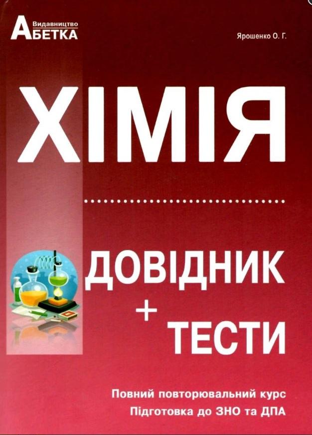 Матеріал довідника укладено відповідно до чинних програм з хімії для закладів загальної середньої освіти, затверджених Міністерством освіти і науки України. Повний повторювальний курс містять теоретичні відомості з усього шкільного курсу з хімії. У кінці,кожного тематичного розділу запропоновано завдання в тестовій формі різного рівня складності. Матеріал посібника може бути використаний для проведення тематичного оцінювання знань, підготовки до державної підсумкової атистації та зовнішнього незалежного оцінювання. Збірник стане незамінним для учнів шкіл, ліцеїв, гімназій, абітурієнтів, студентів вищих навчальних закладів, учетелів, викладачів.